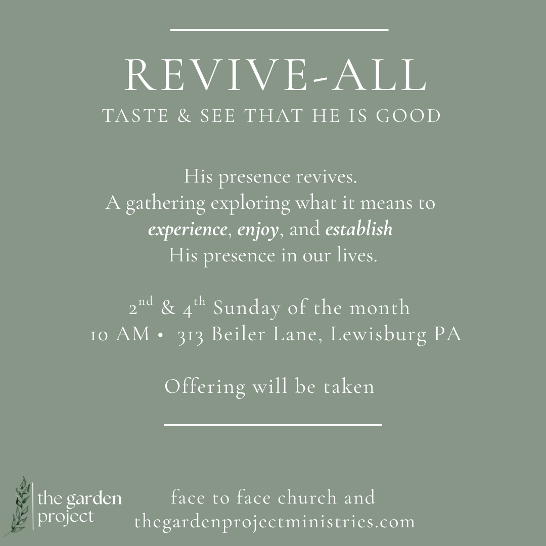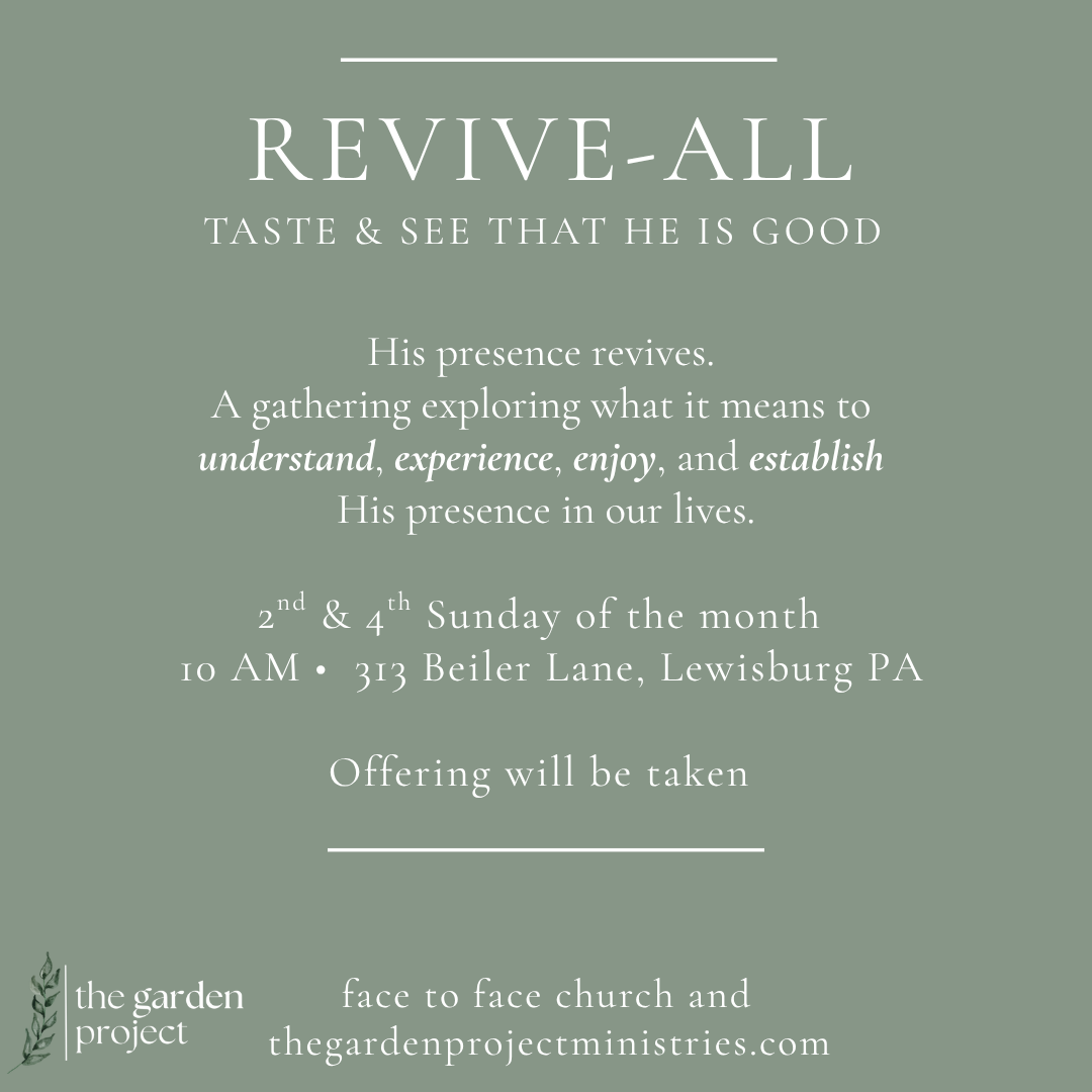 We were created to be known and loved. It was always God’s intention for us to live face to face with Him. It was His idea to create us to be in communion with Himself and with other covenant ones. Our mission is to create a space where His presence is experienced. From His presence we are transformed into the image of His son, Jesus. God the Father is full of love and goodness. When we taste and see His goodness, the Holy Spirit guides us into all truth.